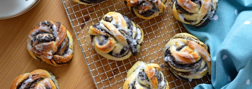 Seit ich vor unserem kurzen Besuch nach Schweden das erste Mal Zimtschnecken gebacken habe, bin ich total verliebt in dieses einfache Rezept, das ein so traumhaftes Ergebnis liefert! Als mein Mann vor gut 6 Wochen in Berlin für seine Kollegen zum Abschied Kuchen mitbringen wollte, kam mir auch gleich der Zimtschneckenkuchen  in den Sinn (das Rezept findet Ihr hier). Andererseits – warum nicht was anderes ausprobieren? Passend zum langsam beginnenden Herbst erschien mir Mohn. Und mit Mohn habe ich auch tatsächlich noch nie was gebacken. Kann ja eigentlich auch nicht sein 😉 Also ran an den Mohn 😀 Und damit es handlicher wird, entschied ich mich für einzelne Knoten statt eines großen Kranzes oder Kuchens, wie ich ihn mit den Zimtschnecken gebacken hatte.